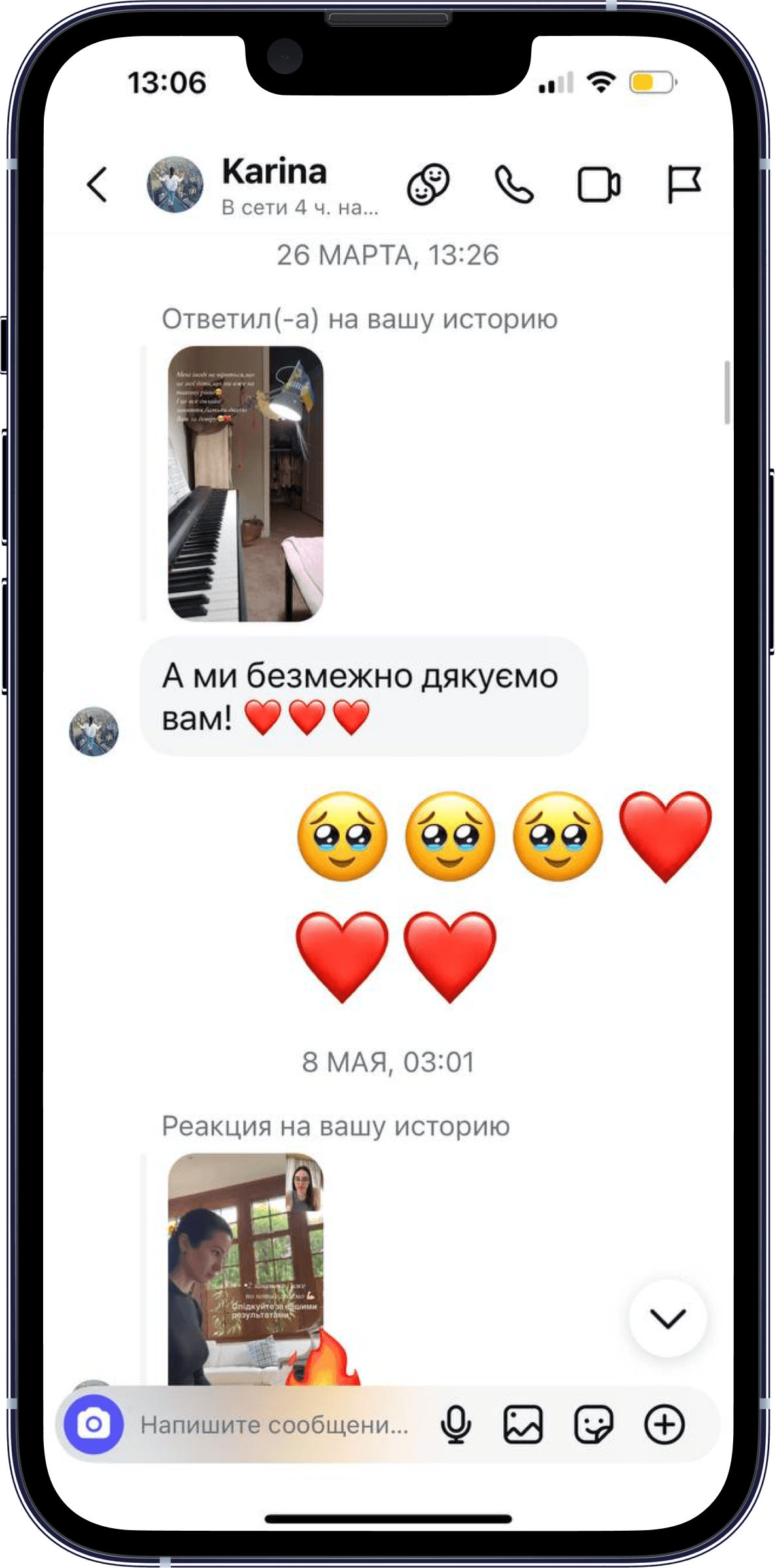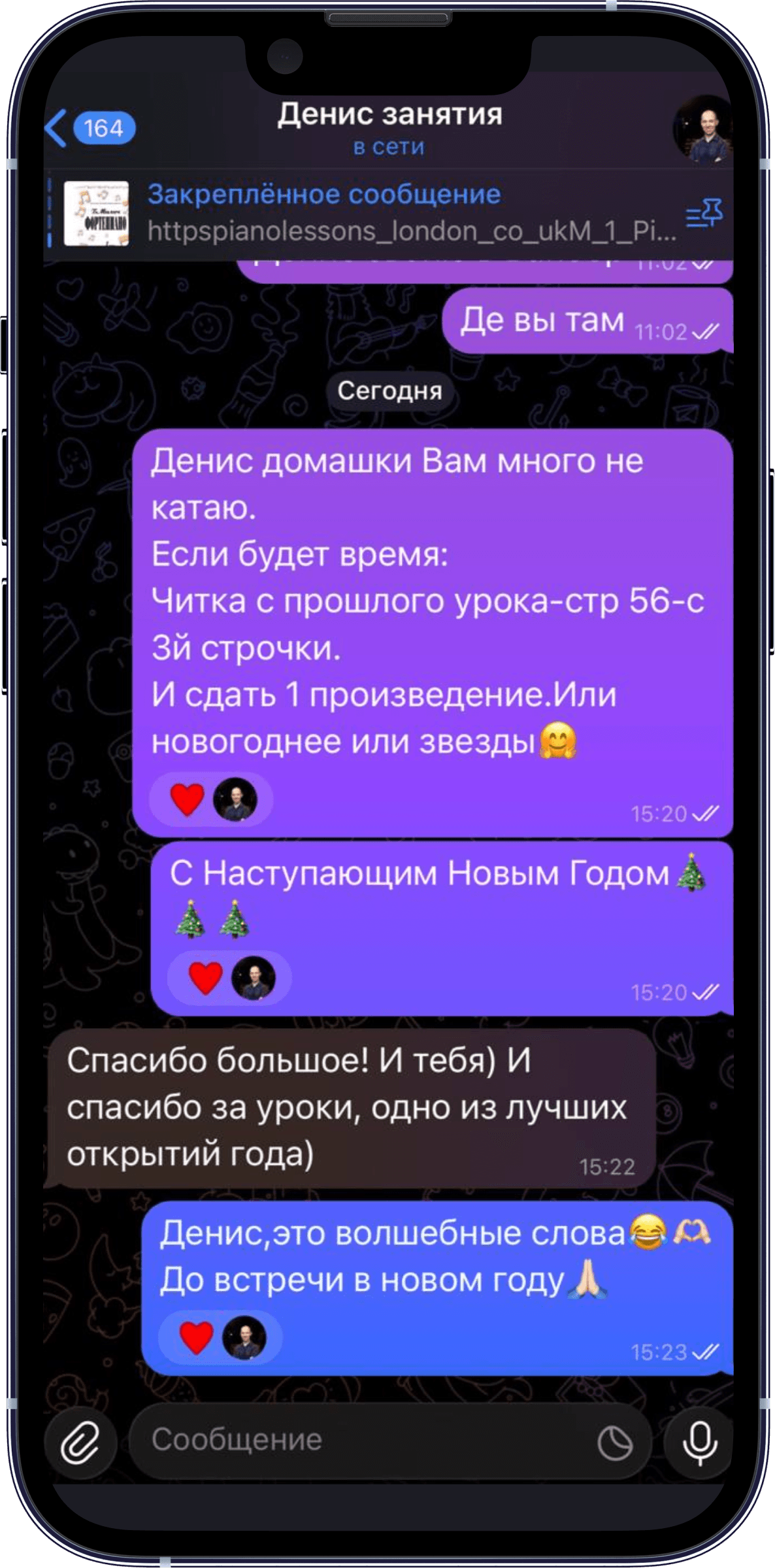 Приєднуйтесь до соцмереж, щоб ближче познайомитися з викладачем, надихатися успіхами учнів і отримувати корисні поради зі світу фортепіано.