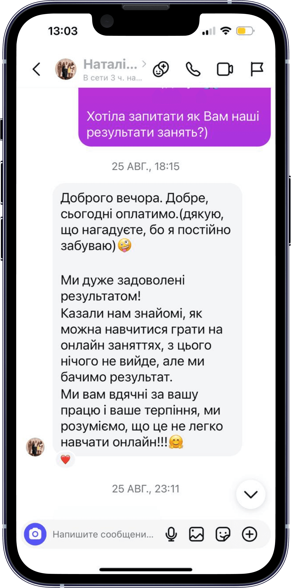 Навчаю зрозуміло, спокійно та з підтримкою, аби музика приносила радість, упевненість