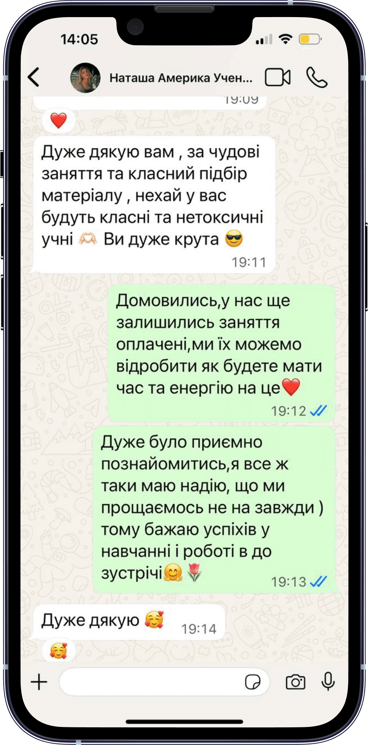 Розробила методику “без стресу та обмежень”, де пріоритетом є радість і задоволення. Завдяки цьому вже 6 років успішно навчаю студентів по всьому світу